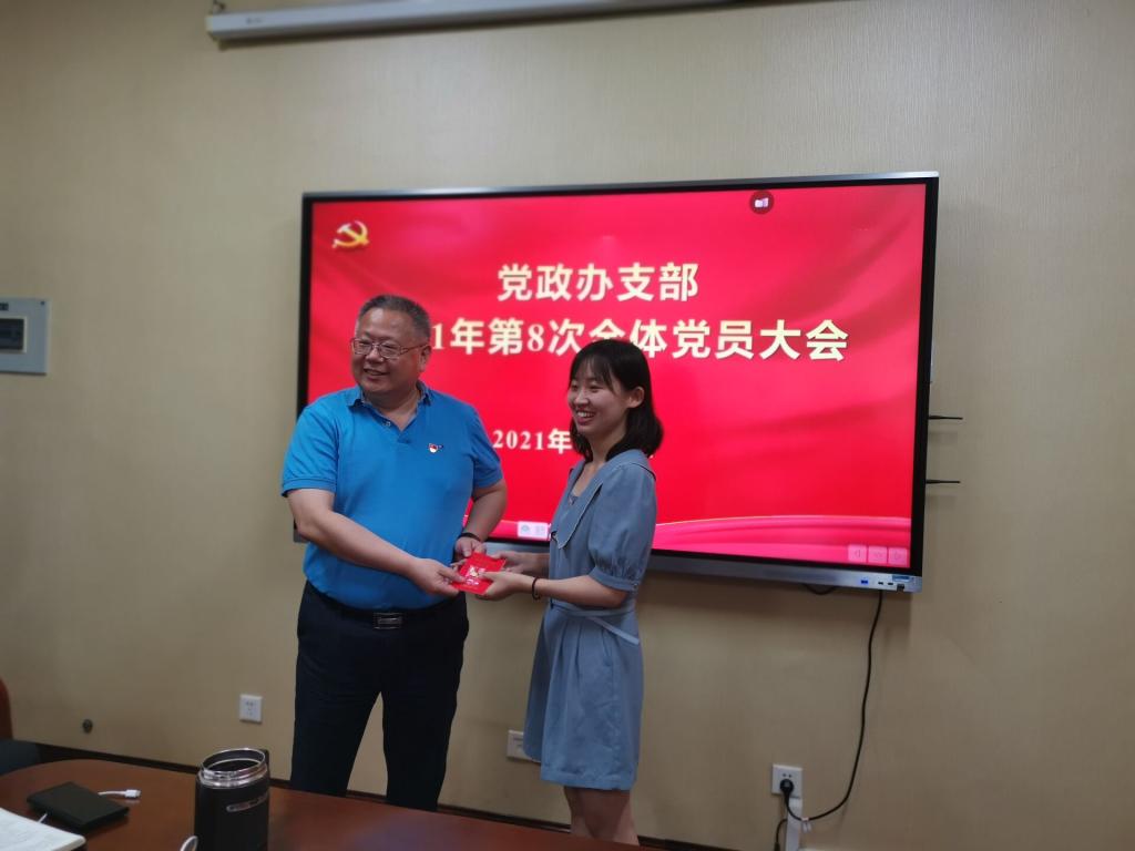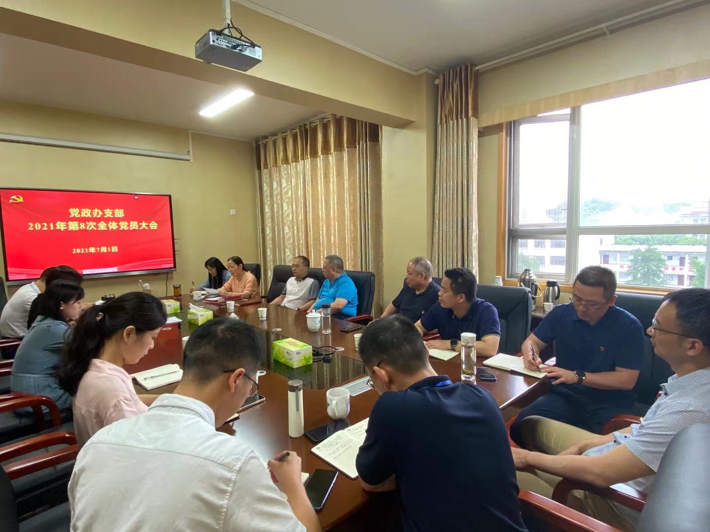 2021年7月1日上午,中国共产党建党100周年之际,bevictor伟德官网党政办党支部召开了第8次全体党员大会。校党委书记黄云清同志,校党委委员、副校长罗定提同志以普通党员的身份参加了此次会议。本次会议分为两个议程。