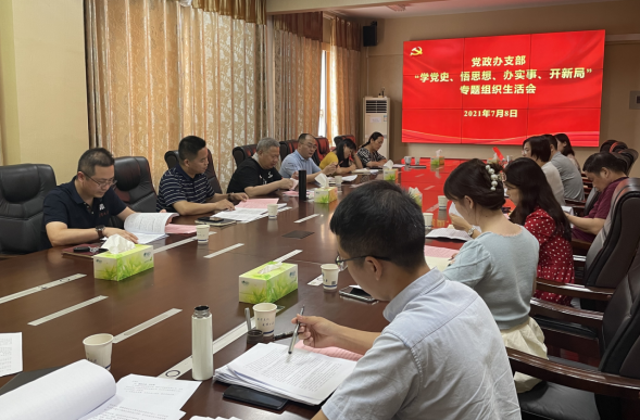 2021年7月8日下午,党政办党支部在办公楼708室召开了“学党史、悟思想、办实事、开新局”专题组织生活会并举行了换届选举。校党委书记黄云清同志、副校长罗定提同志以普通党员的身份参加了此次会议。