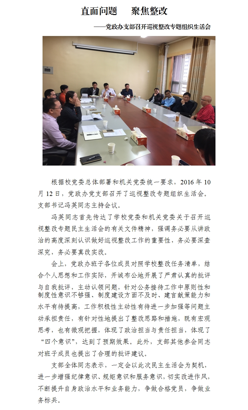直面问题 聚焦整改——党政办支部召开巡视整改专题组织生活会