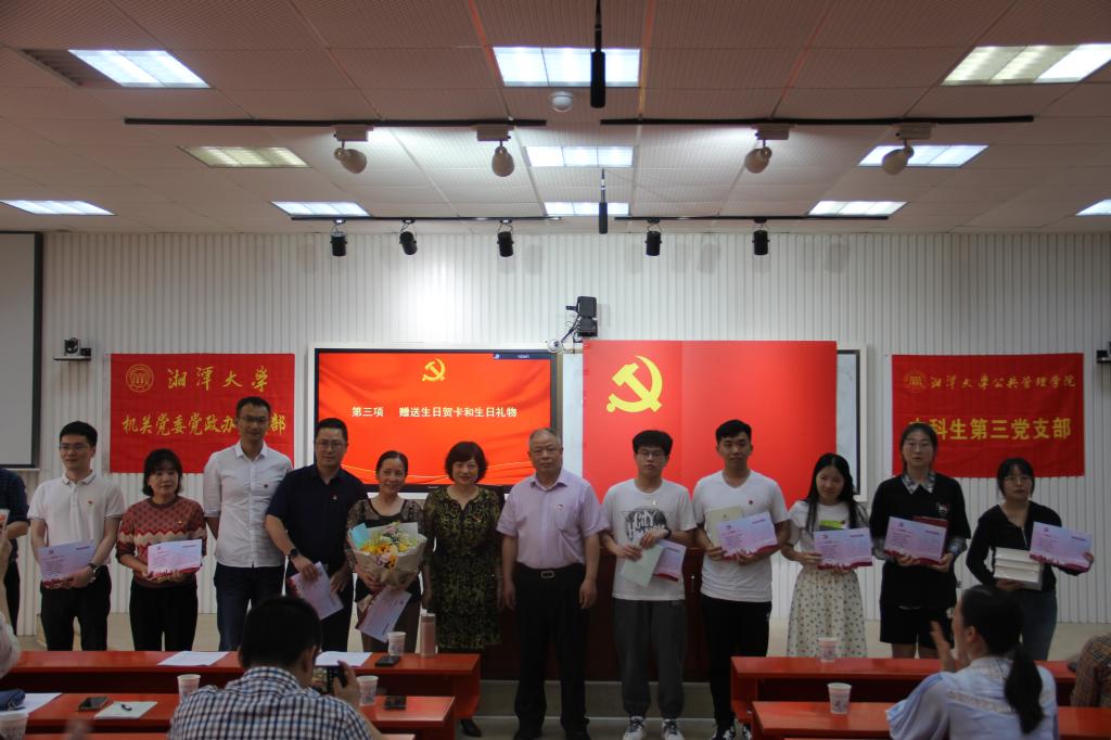 党支部为毕业生党员同志过集体政治生日,并向毕业生党员们赠送贺卡和纪念品。罗定提表达了对毕业生党员的祝愿,并希望毕业生党员们要时刻牢记自己的“湘大人”身份,不论走到哪里、走得有多远,都不能忘记来时的路,都不忘常“回家”看看。