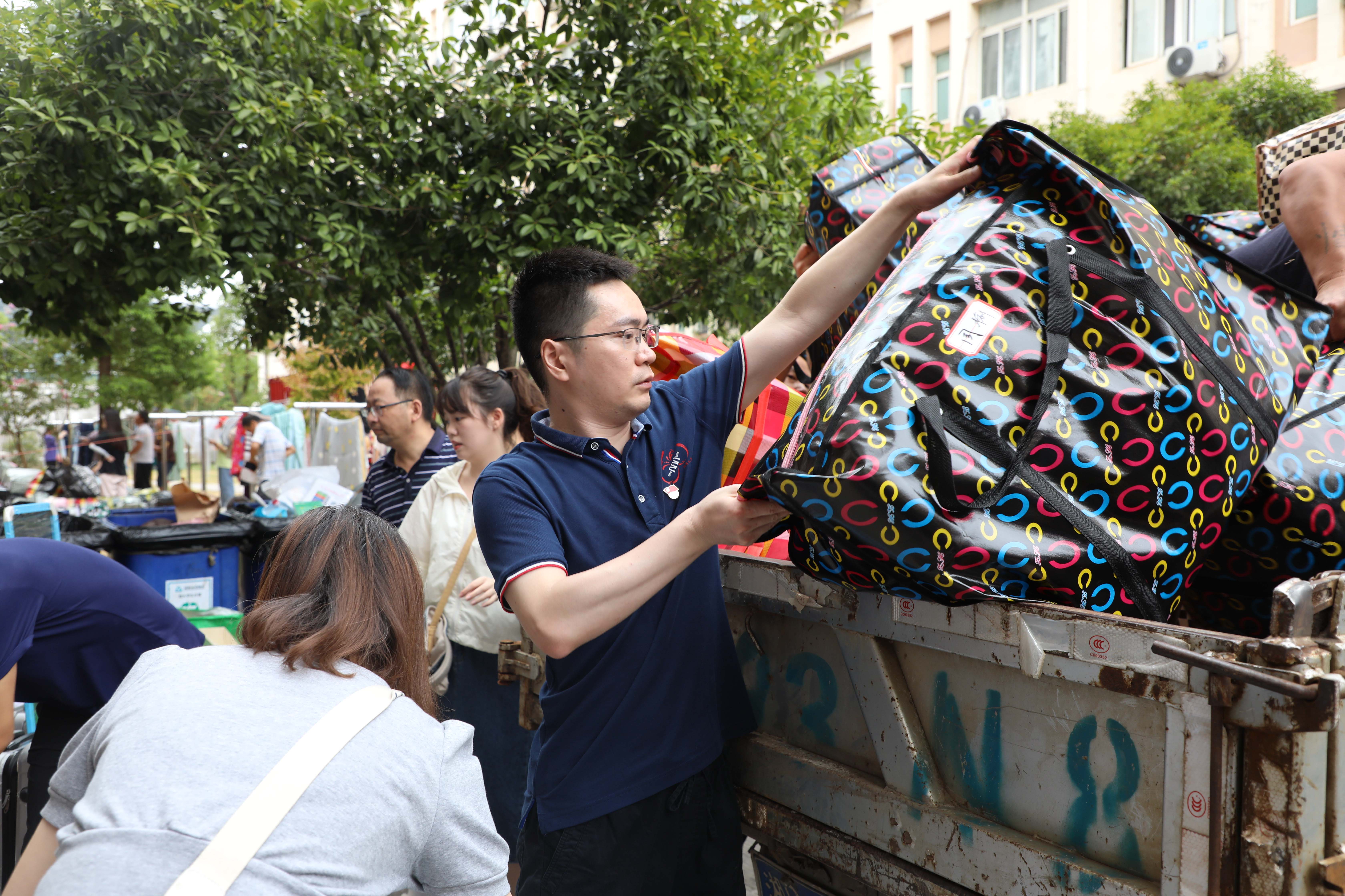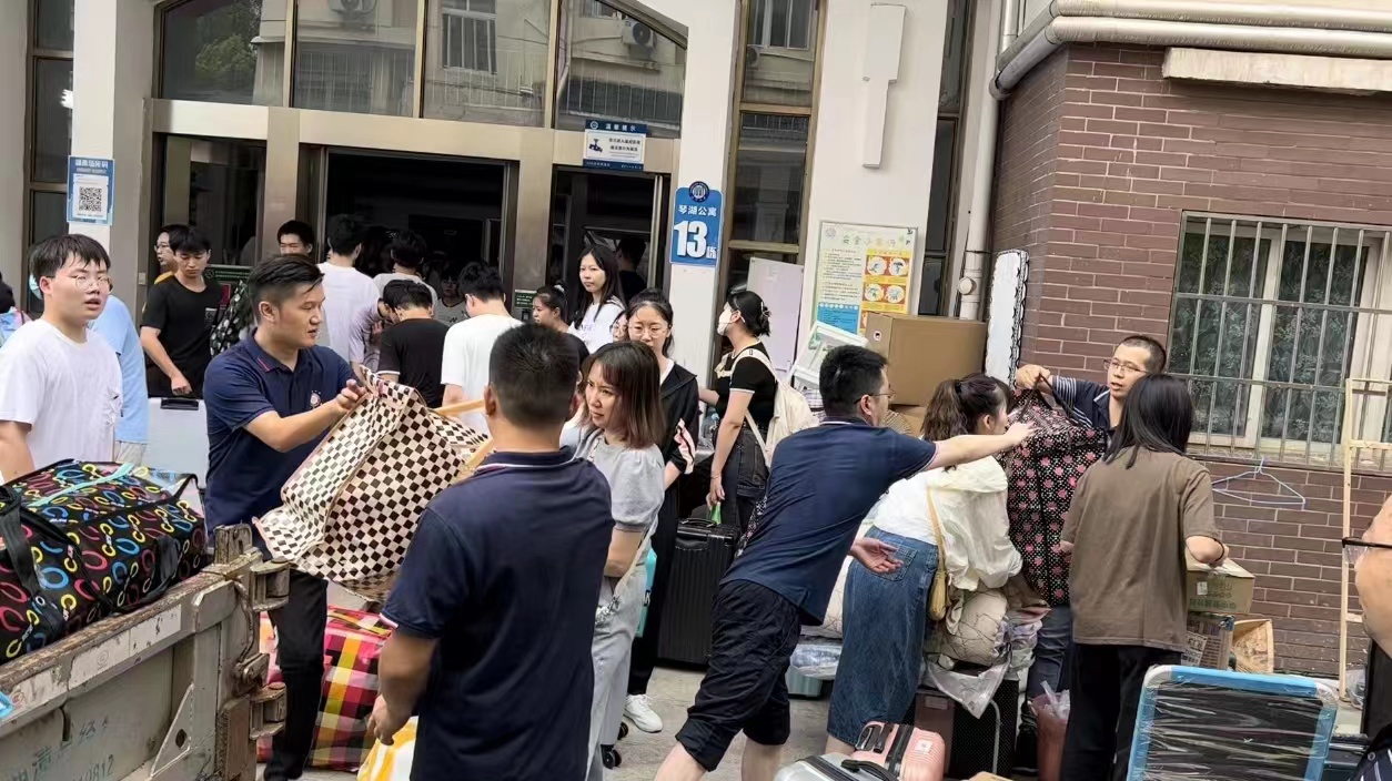 上午8点,支部党员志愿者们准时来到琴湖公寓13栋楼下,在和计算机学院·网络空间安全学院师生进行简单交流之后,并积极投入到宿舍搬迁工作中。志愿者们顶着炎炎烈日,不惧高温坚守岗位,和学生们一起,一趟又一趟地搬运行李物品。尽管行李多且重,汗水也早已数次打湿他们的衣服,但他们没有一丝抱怨,为搬迁工作尽自己最大的力量,用行动践行志愿互助精神。一个个忙碌的身影在宿舍楼栋间来回穿梭,成为校园里一道美丽的风景线。在志愿者和学生的通力协作下,学生宿舍搬迁工作,在愉快和谐的氛围中顺利完成。