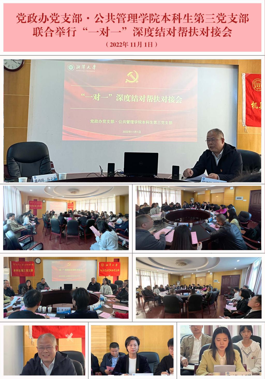 为深入贯彻落实机关党委bevictor伟德官网开展“一对一”深度结对帮扶活动部署安排,充分发挥支部结对共建“1+1>2”的效果,2022年11月1日下午,党政办党支部·公共管理学院本科生第三党支部在综合办公楼B311会议室,联合举行了“一对一”深度结对帮扶对接会,副校长罗定提出席了本次活动。