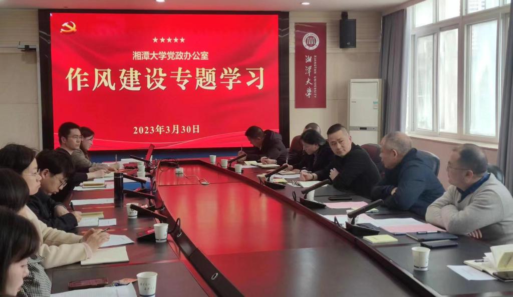 2023年3月30日,党政办党支部以“加强作风建设、强化责任担当”为主题,组织召开了作风建设专题会议,校党委委员、副校长罗定提同志以普通党员身份参加。