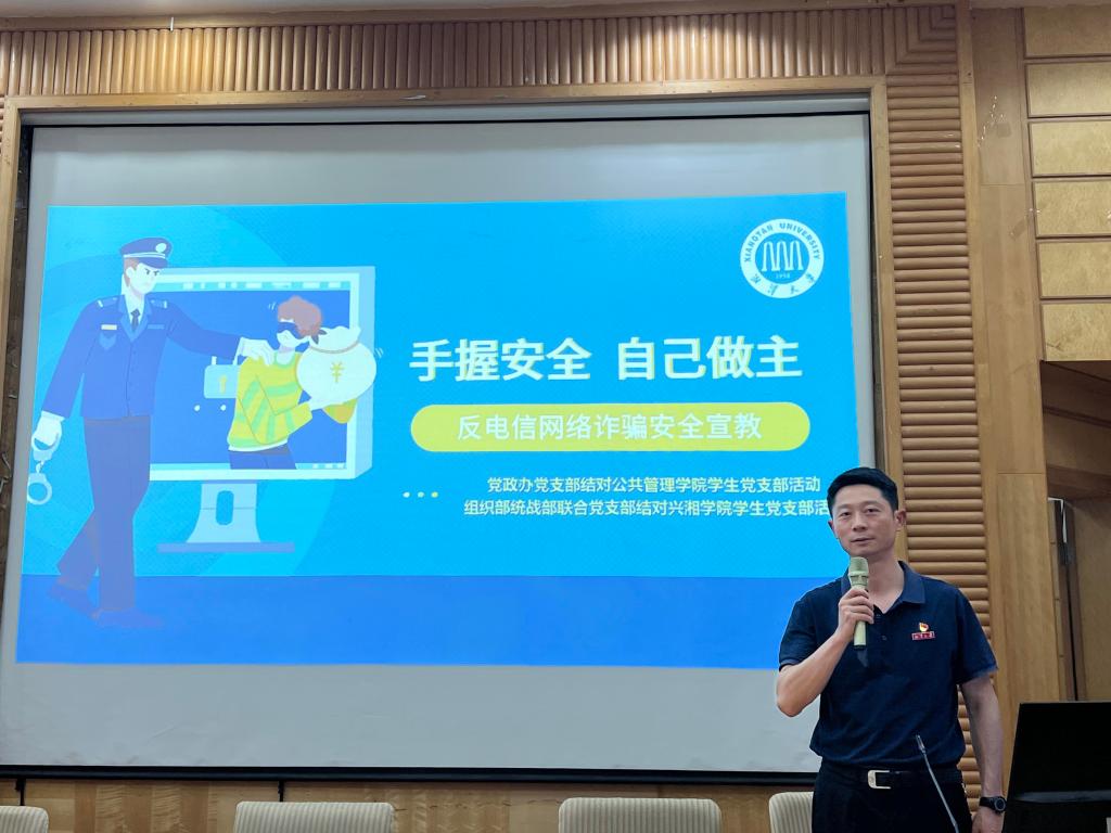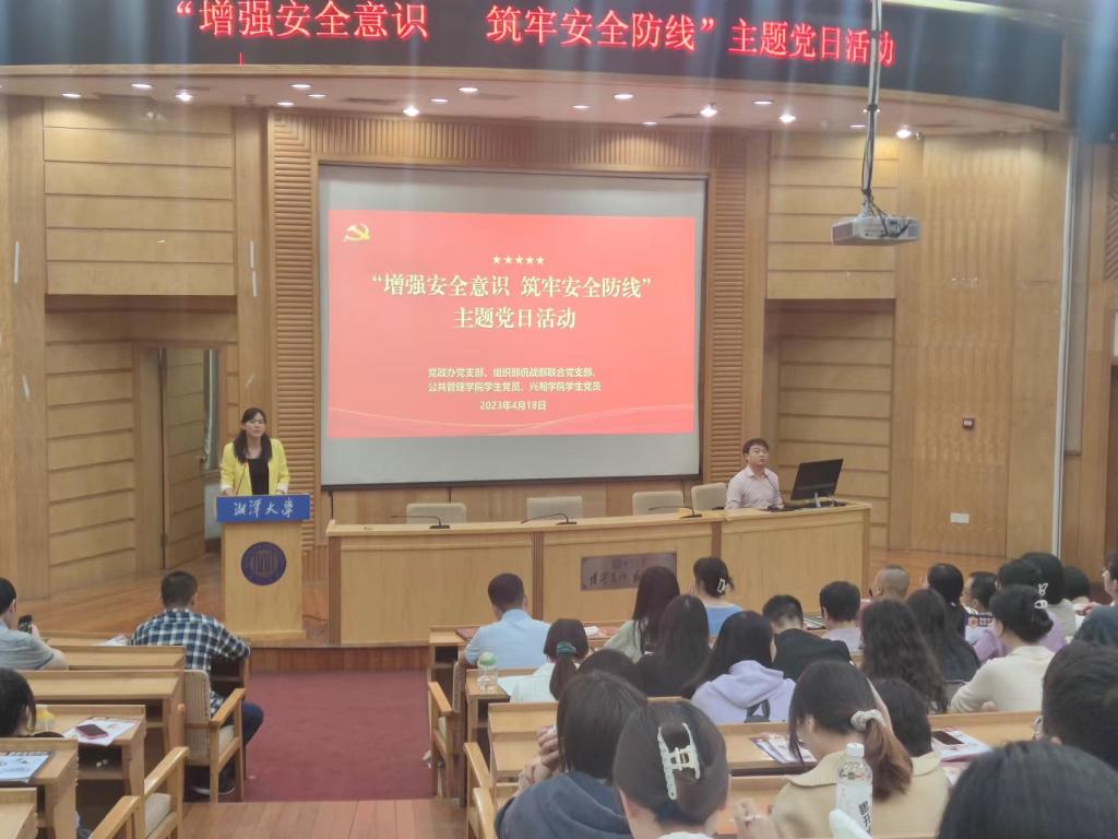 为深入贯彻落实总体国家安全观,切实增强师生维护国家安全意识,2023年4月18日下午,党政办党支部、组织部统战部联合党支部、公共管理学院学生党支部、兴湘学院学生党支部等五个支部,以国家第八个“全民国家安全教育日”为契机,在图书馆报告厅,结对共建开展了“增强安全意识 筑牢安全防线”主题党日活动,120多名师生党员参加了此次活动。