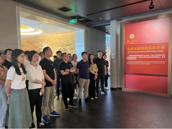 在参观毛泽东思想专题展过程中,讲解员带领支部全体党员同志依次参观和学习了毛泽东思想的发展历程、科学体系、历史地位以及对毛泽东思想的研究。从《中国社会各阶层的分析》《井冈山的斗争》《中国的红色政权为什么能够存在》《反对本本主义》《星星之火,可以燎原》《改造我们的学习》等毛主席著作,到“枪杆子里面出政权”“八角楼上的灯光”“支部建在连上”等一系列革命故事,再到“统一战线、武装斗争、党的建设”“实事求事、群众路线、独立自主”等重要思想的凝练历程。支部党员同志们深刻感悟到,毛泽东思想从萌芽到成熟,再到形成一套完整的科学体系,无不蕴含着对党的纪律作风的高度重视和严格要求。